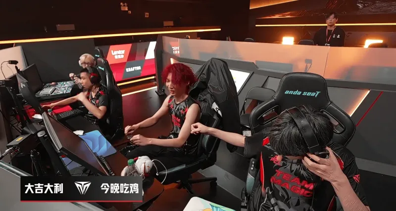 决赛圈JDG 4V4 TM,随后TM先打掉JDG一人,随后JDG也打倒TM一人,但TM依靠地形优势主动进攻,最终清下JDG残编,完成吃鸡。