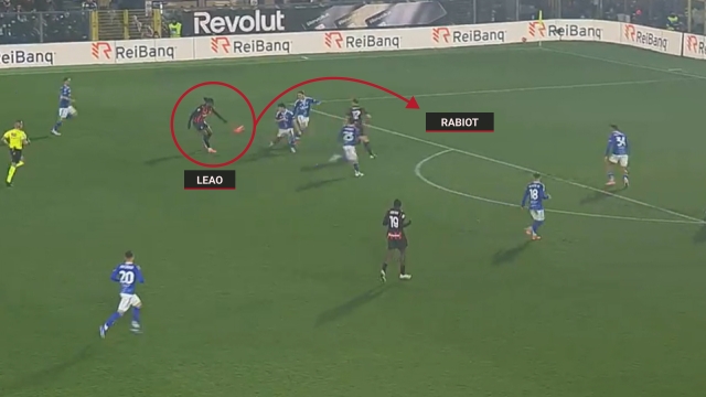 莱奥不再冲刺了。观看米兰的比赛时,这一点很引人注目。拉法曾经一直是一辆MotoGP赛车:加速、刹车、变向。米兰凭借他的涡轮增压赢得了联赛冠军,而2023年欧冠对阵那不勒斯的四分之一决赛将永远是一个生动的展示:莱奥发动反击,对手无法阻止他。或许用测速仪才能拦住。如今场上那个球员已经不见了。拉法无法冲刺——身体有些变化,更强壮了,而且内收肌问题让他不安——所以他做出了调整。近几周在场上,他做了不同的事情,从未见过或很少见到的事情。其中之一:中锋式的跑动。阿莱格里在对阵莱切时要求他攻击防线,而莱奥不止一次这样做了。他当然不是专家,但正在尝试。十一月,他在对阵拉齐奥的比赛中,通过摆脱萨里的防线,接托莫里的传中头球破门。对阵莱切时,他有几次也接近成功。理想的计划很明确:找回过去的运动活力,并增加中锋的跑动。